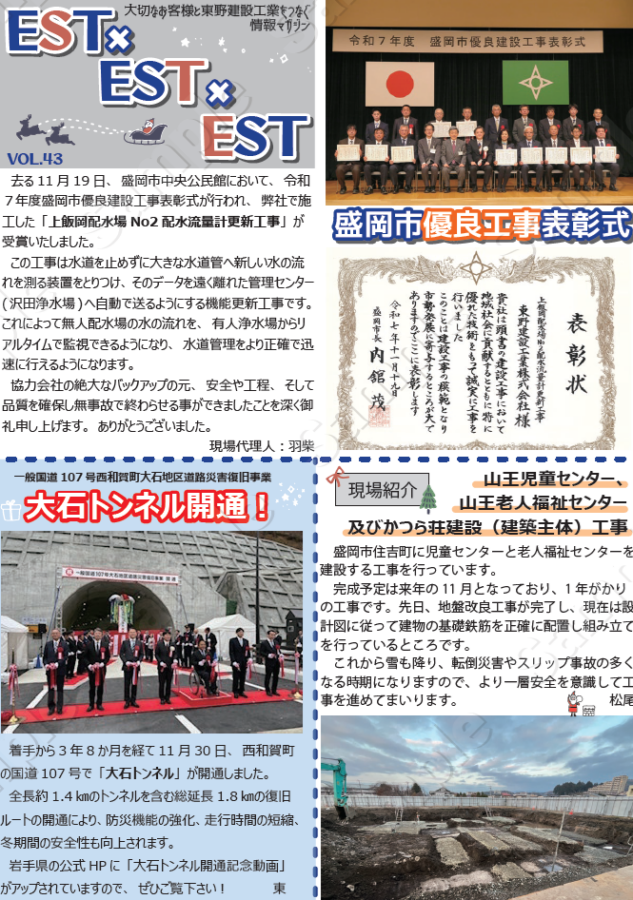 弊社の社外報である「エスト×エスト×エスト!」のvol.43を発行いたしました。