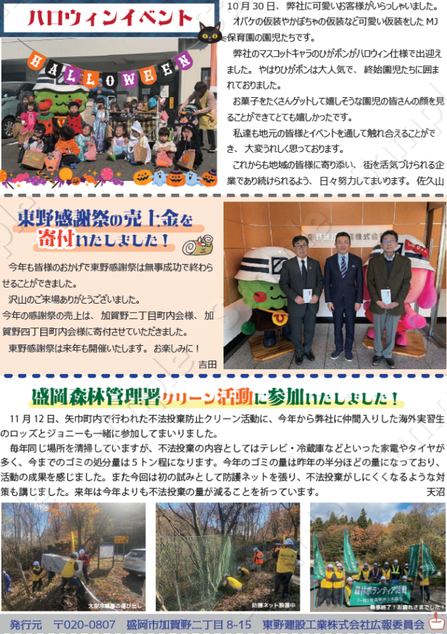 今回は盛岡市優良工事表彰・大石トンネル開通のご報告、現在施工中の工事現場などお届けしております!
