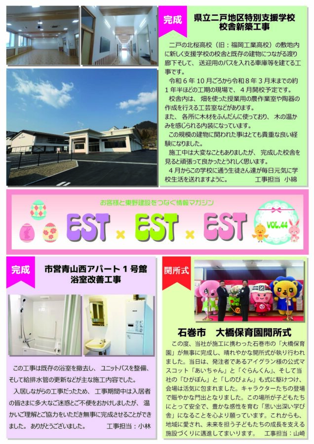 弊社の社外報である「エスト×エスト×エスト!」のvol.44を発行いたしました。