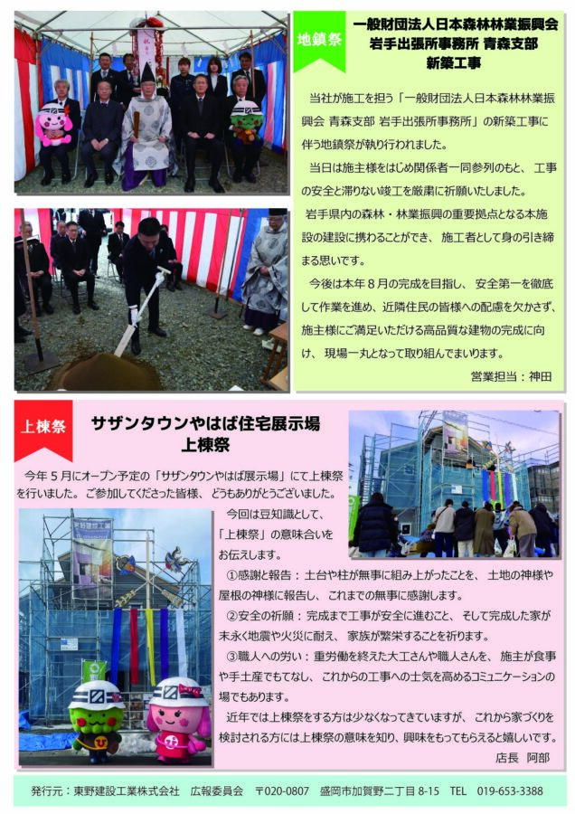 今回は完成工事・開所式のご紹介、これから施工される工事、住宅展示場上棟式の様子をお届けしております!