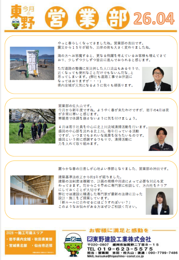 今月の東野営業部(2026.4月)を掲載しました。